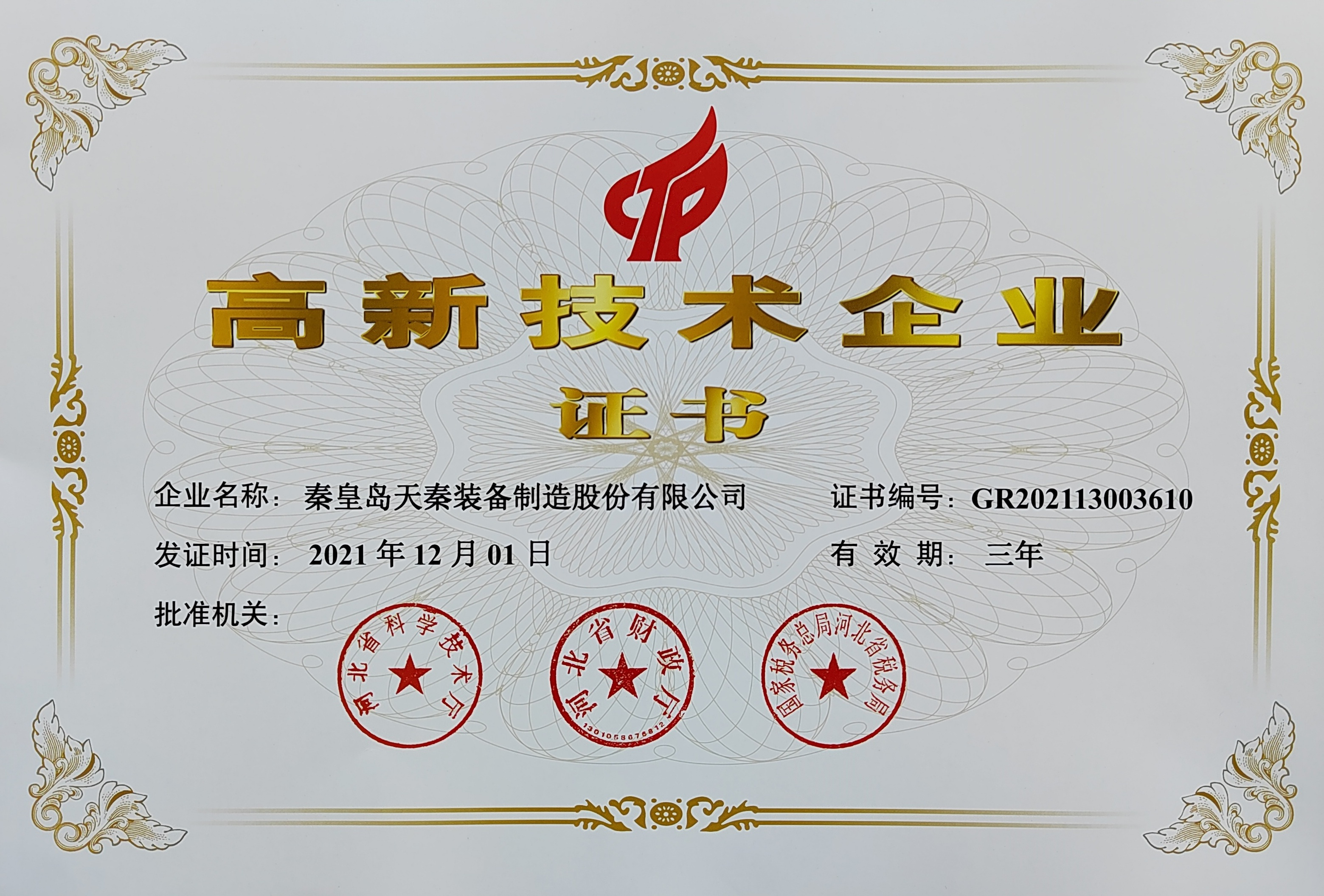 • 秦皇島天秦裝備制造股份有限公司創(chuàng)立于1996年,總部位于河北省秦皇島市經(jīng)濟技術(shù)開發(fā)區(qū),秦皇島廠區(qū)占地4萬平方米,擁有3萬平方米的標(biāo)準(zhǔn)廠房、辦公樓和工程技術(shù)研發(fā)中心;分部天津廠區(qū)位于天津市靜海經(jīng)濟開發(fā)區(qū),占地2萬平方米,擁有1.6萬平方米標(biāo)準(zhǔn)廠房。 公司通過了GB/T 19001質(zhì)量管理體系及GB/T 24001環(huán)境管理體系認(rèn)證,是國家高新技術(shù)企業(yè)、河北省軍民融合產(chǎn)學(xué)研用創(chuàng)建基地,建有省級院士工作站。